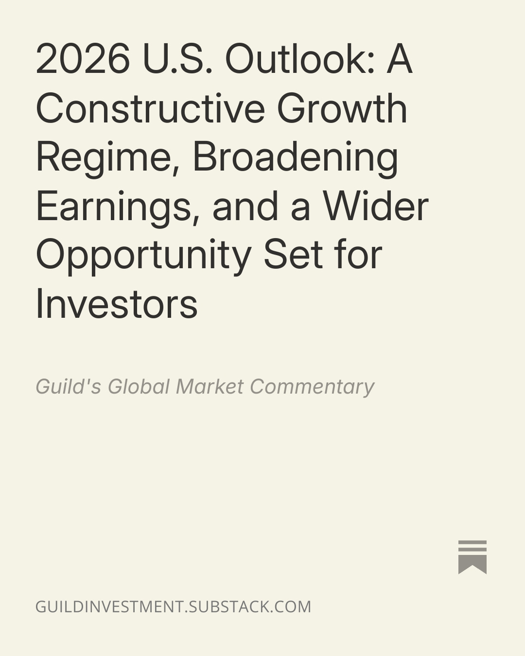2026 U.S. Outlook: A Constructive Growth Regime, Broadening Earnings, and a Wider Opportunity Set for Investors December 18, 2025